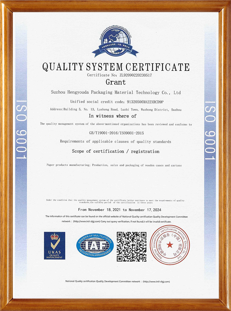 蘇州恒優達包裝材料科技有限公司位于蘇州吳中區甪直古鎮,靠近滬寧高速、滬寧鐵路,靠近昆山,上海,蘇州工業園區等,交通十分便捷。公司占地面積1500平方米,擁有員工18余人,其中專業技術人員10名。我公司是一家專業生產包材:瓦楞紙板、紙箱、紙托盤、木箱、木托盤、泡棉的企業。