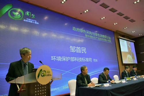 環保部科技司鄒首民司長在致辭中指出,環境標志產品政府采購制度是實現經濟發展與生態環境協調發展的典范,財政部門采信環境保護部門推動的環境標志制度,實現了部門職能優勢互補,培育了綠色產業發展,有效地推動了中國的綠色消費和綠色生產的進程,產生了良好的經濟和社會效益,得到了國際社會的巨大關注和好評。
