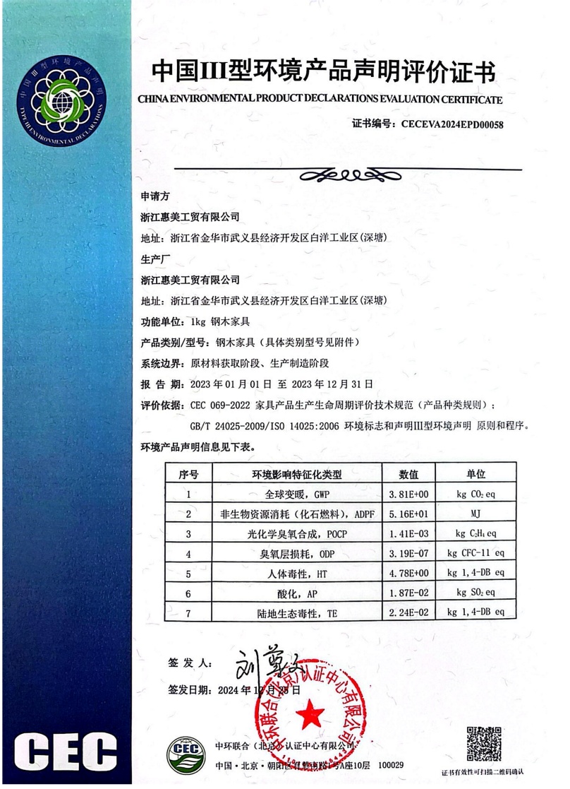 浙江惠美工貿(mào)有限公司-CECEVA2024EPD00058