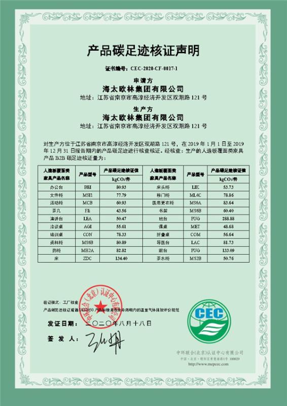 下一篇:海太歐林集團有限公司 CEC-2020-CF-0017-2-人造板涂飾類家具