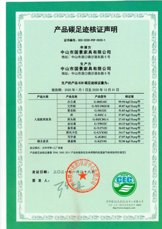 中山市國景家具有限公司-CEC-2020-PCF-0025-1-人造板類家具+鋼木家具