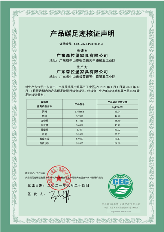 下一篇:廣東森拉堡家具有限公司碳足跡證書-CEC-2021-PCF-0043-3-鋼木類家具