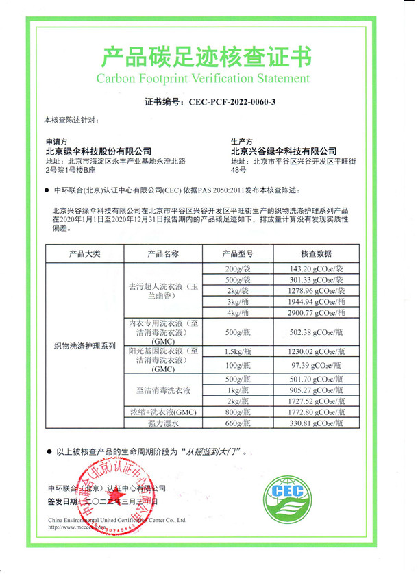 北京興谷綠傘科技有限公司-CEC-PCF-2022-0060-3-織物洗滌護(hù)理系列