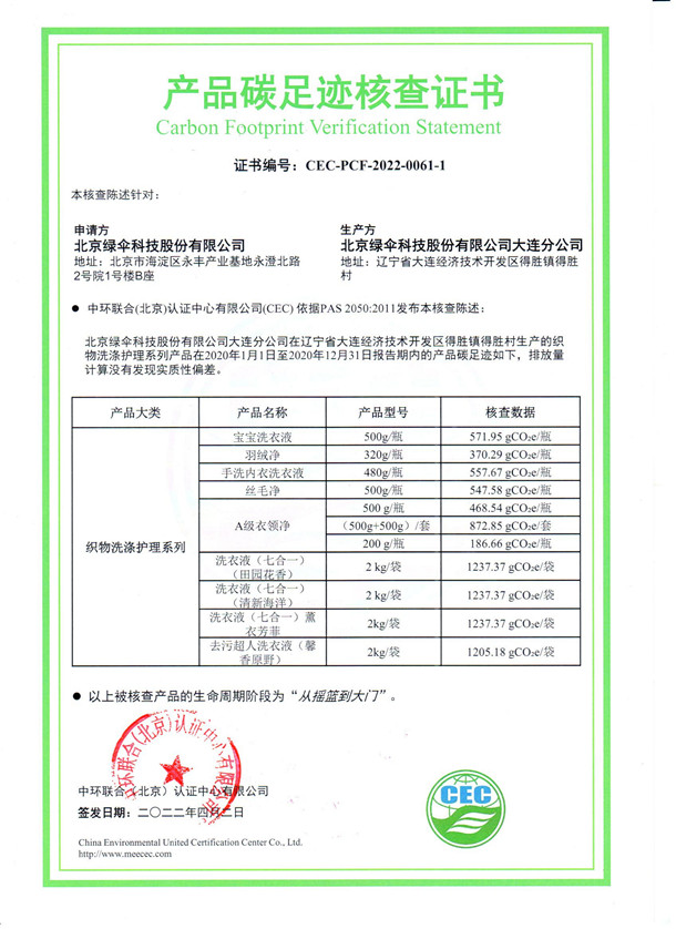 上一篇:北京綠傘科技有限公司大連分公司-CEC-PCF-2022-0061-2-織物洗滌護(hù)理系列