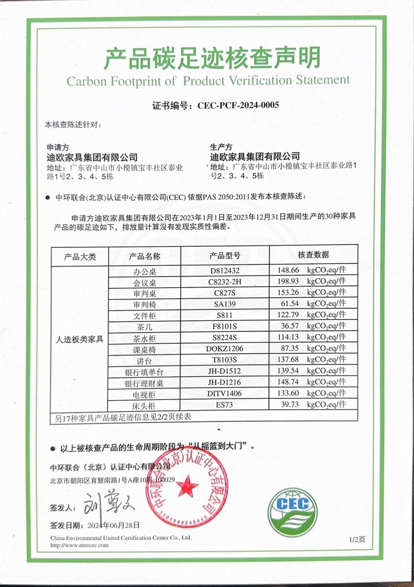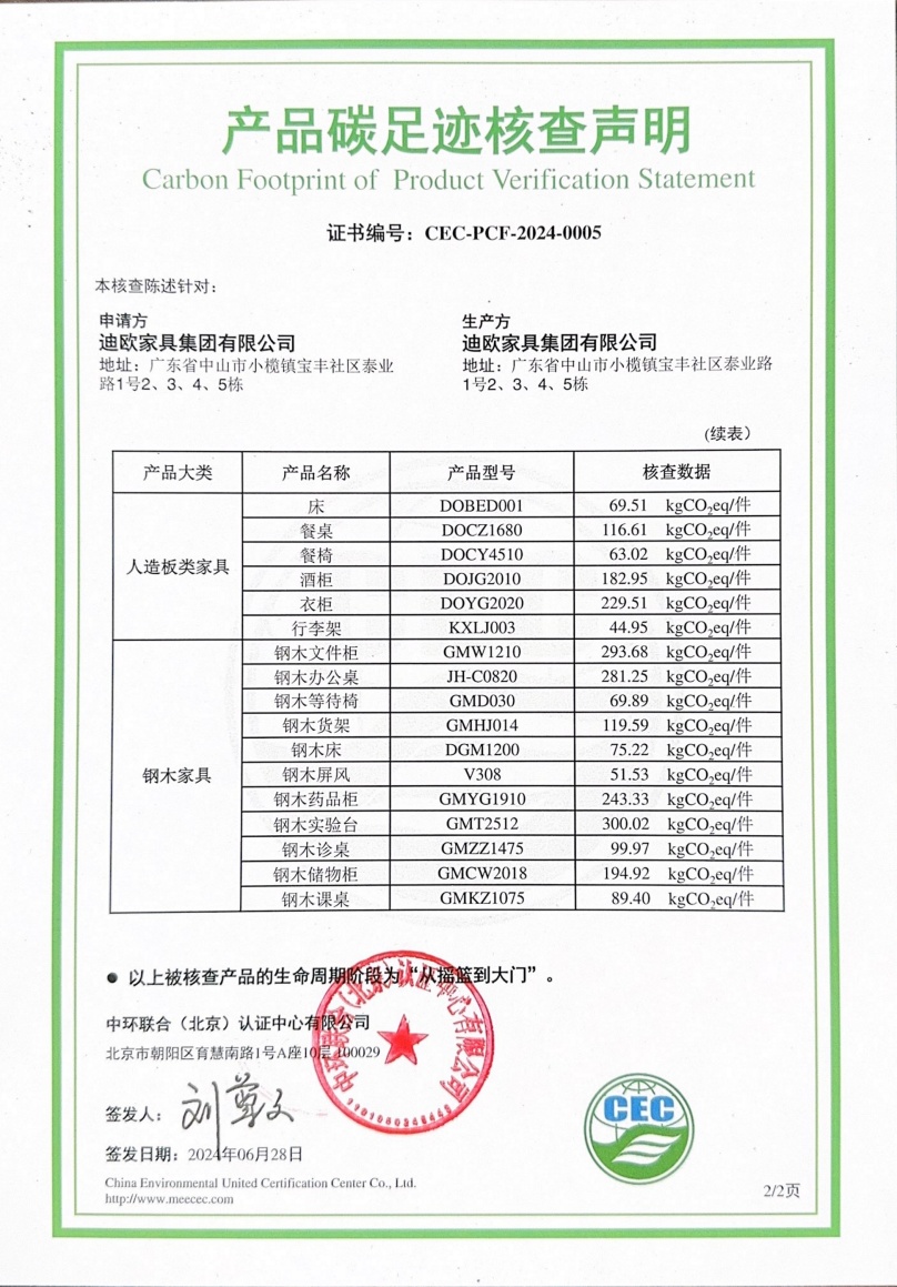迪歐家具集團有限公司-CEC-PCF-2024-0005