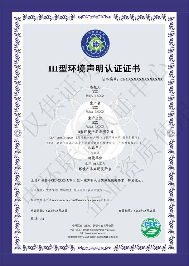 Ⅲ型證書打印內容