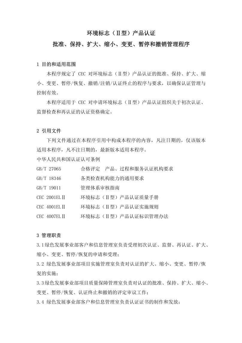 環(huán)境標(biāo)志(Ⅱ型)產(chǎn)品認證批準(zhǔn)、保持、擴大、縮小、變更、暫停和撤銷管理程序