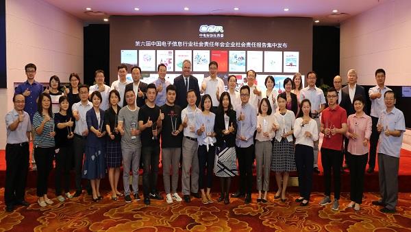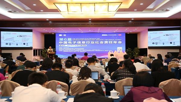 2018年9月12日,由工業和信息化部指導,中國電子技術標準化研究院和中國電子工業標準化技術協會聯合主辦,中電標協社會責任工作委員會承辦的第六屆中國電子信息行業社會責任年會在北京召開。中國電子技術標準化研究院院長趙波、工信部政策法規司副司長范斌、電子信息司巡視員胡燕以及部科技司、信軟司、節能司和江蘇省經信委等領導出席會議。綠色消費與綠色供應鏈聯盟(GCSG)、全球貿易協會(amfori)和責任商業聯盟(RBA)應邀出席會議。此外,國內外知名電子信息企業、高校、研究機構及社會組織近200人參加了本次會議。