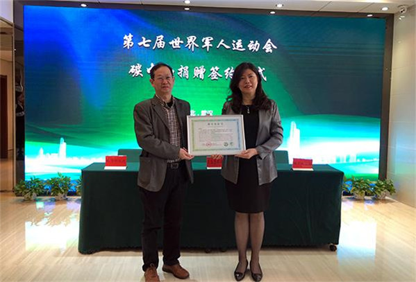 2019年10月31日,第七屆世界軍人運動會碳中和發布會暨碳中和捐贈簽約儀式在湖北省碳排放權交易中心舉行。中環聯合總經理張小丹出席發布會,并為湖北省生態環境廳頒發碳中和證書。