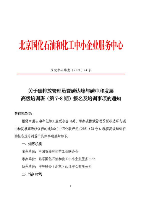 關于碳排放管理員暨碳達峰與碳中和發展高級培訓班(第7-8 期)