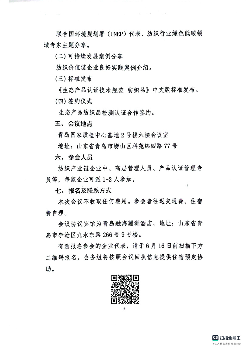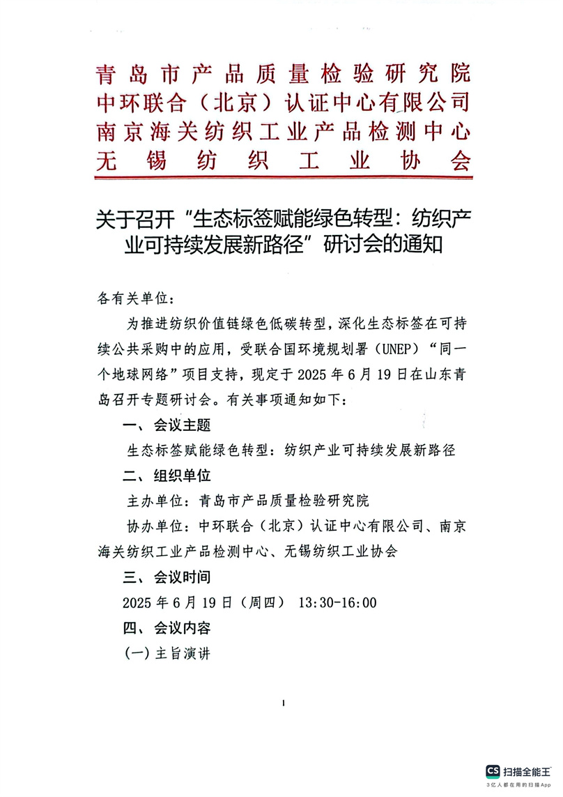 關(guān)于召開“生態(tài)標(biāo)簽賦能綠色轉(zhuǎn)型:紡織產(chǎn)業(yè)可持續(xù)發(fā)展新路徑”研討會的通知