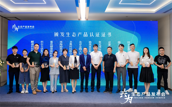 會上還發布了家具生態產品認證技術規范的團體標準,并為首批獲證企業頒發了生態產品認證證書。